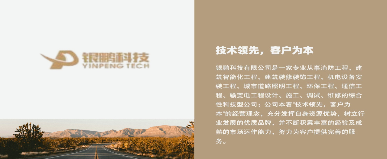 銀鵬科技有限公司是一家專業(yè)從事消防工程、建筑智能化工程、建筑裝修裝飾工程、機(jī)電設(shè)備安裝工程、城市道路照明工程、環(huán)保工程、通信工程、輸變電工程設(shè)計(jì)、施工、調(diào)試、維修的綜合性科技型公司。公司具有建設(shè)主管部門頒發(fā)的《建筑業(yè)企業(yè)資質(zhì)證書》:建筑裝修裝飾工程專業(yè)承包壹級、消防設(shè)施工程專業(yè)承包壹級、電子與智能化工程專業(yè)承包壹級、防水防腐保溫工程專業(yè)承包壹級、建筑機(jī)電安裝工程專業(yè)承包壹級資質(zhì)、通信工程總承包貳級、市政公用工程施工總承包貳級、建筑工程施工總承包貳級、古建筑工程專業(yè)承包貳級、機(jī)電工程施工總承包貳級、輸變電工程貳級、特種工程(特種防雷)專業(yè)承包不分等級、智能...